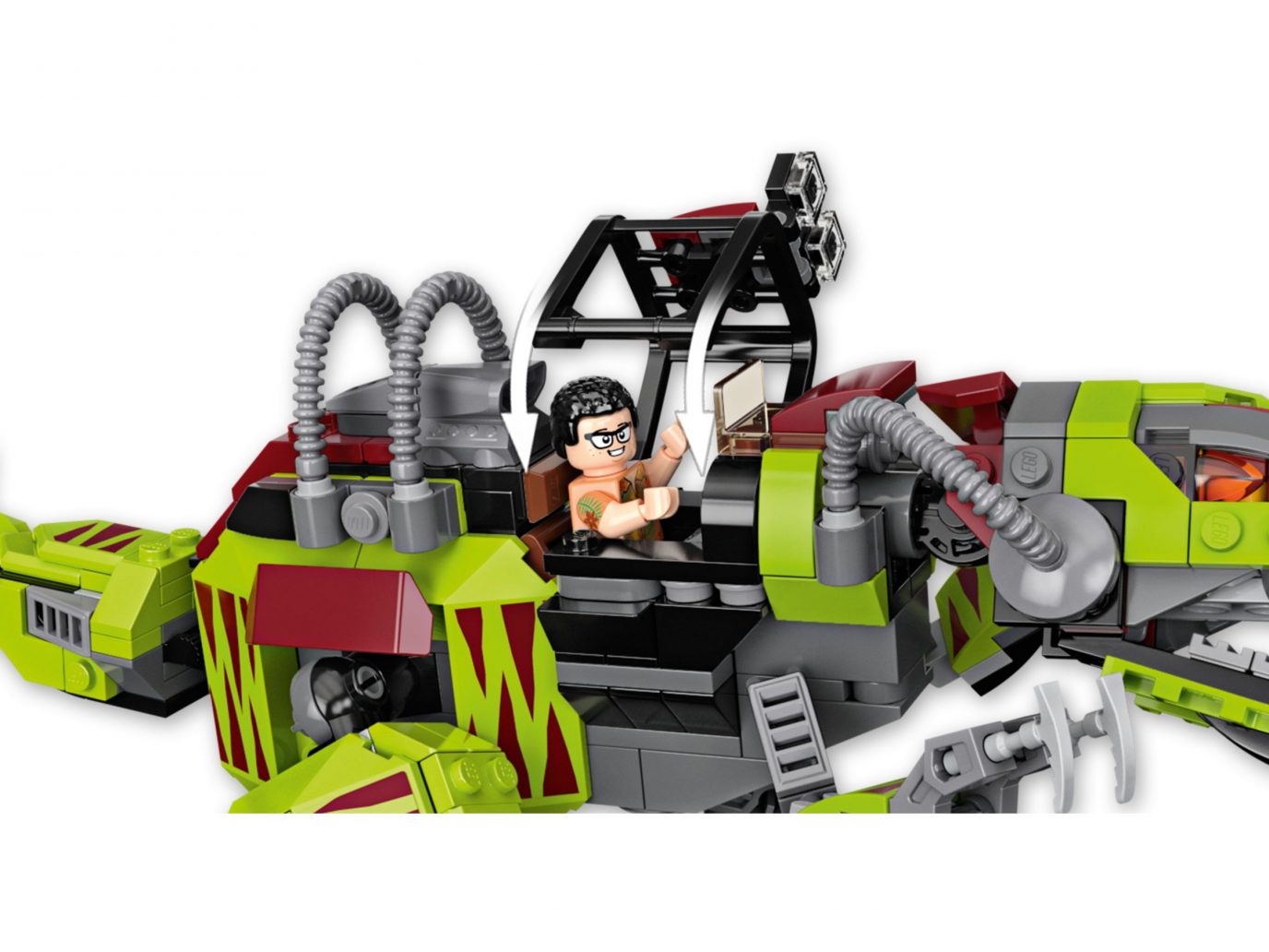 This set certainly is a step-up from last year’s $20 – the Pteranodon Capture. Here we get a beautiful store-front area with lots of great graphics (including an Indominus Rex Coming Soon sign!) which Jurassic World LEGO fans are sure to love – especially if they are planning their own builds soon! Here we also get a FANTASTIC torso with the Jurassic World T-Shirt printed underneath a red hoody, and a useful park worker torso which I am sure many fans will appreciate. Finally, we also get that beautiful brand new Dilophosaurus mould – which is much more in scale to minifigures. Fingers crossed we see raptors in this size soon!